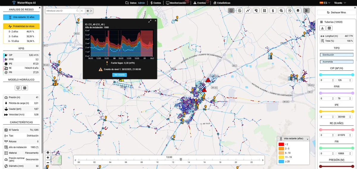 By consolidating this data into a single, unified source, the platform eliminates operational silos and enables the deployment of deep analytics functionalities, driven by advanced AI algorithms specifically designed for the optimal management of water networks.